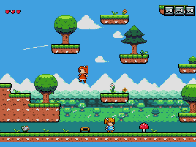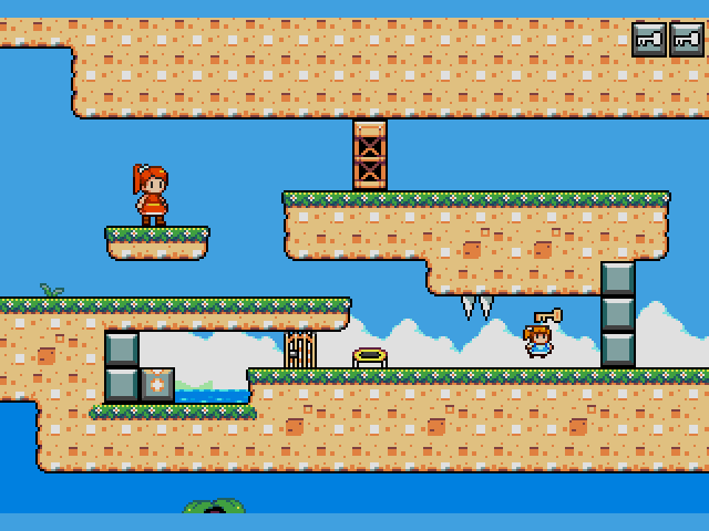itch comments : Alice Sisters is a cute puzzle / platformer game with a 2 players co-op mode, originally developed for the Sega Genesis / Megadrive, it was ported to PC, GBA, Atari Falcon and Dreamcast., The big mountain villain captured the mom of Alice and her sister.Help Alice and her sister save their mother through 28 levels spread over 4 worlds, each with their final villain to battle against!Play alone by switching from one character to another, or cooperate with 2 players to complete each level.Each of the sisters has her own power, Alice can change size by jumping on magic mushrooms.Her small size will allow her to pass through narrow spaces, but be careful because she will not be able to jump very high and very far!Alice's sister can throw balls to repel enemies or break stones blocking the path.Go through the levels and solve puzzles by activating the right lever, the right switches, as well as finding the color keys to open the different doors.Replay value with 4 playing modes: easy mode with no death, normal mode, puzzle mode with careful usage of the ball throwing and hard mode with limited lives !, Compatibility:, -Sega Megadrive / Genesis (Use a flash cart or an emulator)-Sega Dreamcast (CDI file to burn using DiscJuggler or use an emulator)-Gameboy Advance (Use a flash cart or an emulator)-Atari Falcon 030 / 060 (8MB of RAM, 27MB of disk space)-PC Windows 7, 10 or higher-PC Linux (64bits only, library needed: SDL2, SDL2_mixer), ,