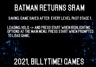 - Tag(s) : Game Save, Hack of Batman Returns