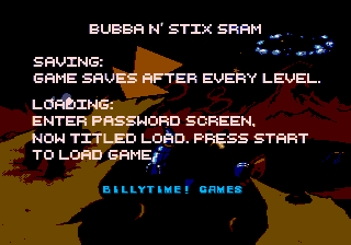 This patch is designed to add a simple saving mechanism to Bubba N’ Stix.Details and Patching Instructions can be found in the Readme.