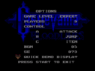 This is a revision of Castlevania: Bloodlines (NTSC-U) to update the gameplay options, cutscenes, and colours.Gameplay changes:Region lockout is bypassed.The remixed Castlevania 1-2 tracks are enabled by default when the player picks up the final upgrades.The player can select Expert Mode from the options menu without beating the game or entering a code first.The player can now select nine lives from the options menu without the use of a code.Cutscene changes:John is once again referred to as Johnny and Elizabeth Bartley is now Erzsebet Bathory.The cutscenes are now updated to include the entire game’s story from the instruction manuals and even the original Japanese story details. For example, Erzsebet’s death is dated to 1614 again and Eric’s motivations are made clear in-game.Graphical changes:In the blonde hair variant, Eric is given blonde hair during gameplay.In the green hair variant, Eric is given green hair in cutscenes.A more purist approach was taken with the graphics overall than with Pyron’s colour hack, merely seeking to fix the discrepancy between Eric’s hair colour in gameplay and cutscenes. However, the player can easily mix this patch with the “Alt Control” hack by BillyTime! Games as well as the “Enhanced Colors” hack by Pyron (in which case the blonde Eric variant is preferred) if they wish.Credits:CF for the gameplay changes, script, and overall project completion.Esrael L. G. Neto for ESE FixCheckSum.Korama for Genesis Savestate Viewer.Hivebrain for HivePal.Maël Hörz for HxD.Pyron for the original blonde Eric colours.