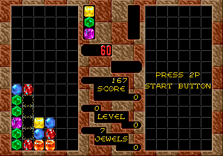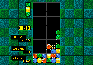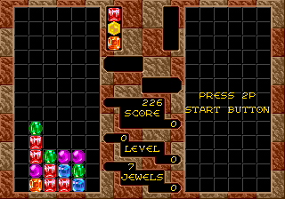 This patch is designed to randomize gem colors in Columns for an extra challenge.How it works:Gem colors are randomized across all modes with a total possibility of 18 different sets of colors. Colors reset when returning to the title screen.Included - Hi-Score SRAM:Saving:Scores save after Initials are entered. Loading:Scores load upon boot. If checksum fails or it is your first time booting, default scores are loaded.