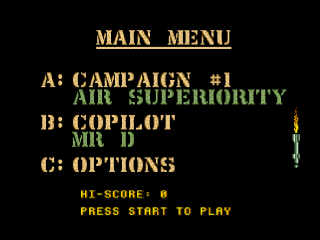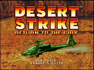 Rom hack of Desert Strike for the Mega Drive adding 6button + SRAM supportHack features:a more robust save system, “campaign mode”.stage unlocked for selection in the main menu when cleared in “campaign mode”. per stage high score displayed on the main menu 6 button support. implements the unused altitude control code found in the original ROM Copilot bios shortened/altered to reflect their effect on the rage attributes. A description of the copilot range attributes was added to the bio. copilot winch activation values spread further apart to have a more obvious difference in gameplay. copilots are marked as TDY (Temporary Duty Yonder) until unlocked by clearing missions in “campaign mode” The location of MIA copilot “Carlos” was changed. Copilot select menu activated at every stage change unless starting stage from the main menu with a non-MIA copilot. flying the helicopter without a copilot sets range attributes to very low number of lives carried over to the next stage. The game restarts to the title screen after the game over screen.version historyv1.4bug fix - overriding a save of a previously cleared stage would lock following unlocked stagesv1.3bug fix - stage 3 mission 8 bus not turning when mode pressedv1.2bug fix - loading campaign still has MIA copilot locked after rescued.bug fix - mission 3 shows 2 power plants on the map.bazooka soldier height value adjusted, was causing a collision with the chopper on a lower altitudev1.1bug fix - mission 4 unlocked shows a random high score.See the readme for further details.