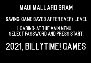 This patch is designed to add a simple saving mechanism to Donald in Maui Mallard.Details and Patching Instructions can be found in the Readme.