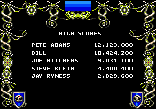 This patch is designed to add a simple saving mechanism for High Scores in Dragon’s Revenge.How to use:Saving:Scores save after player returns to the Title screen.Loading:Scores load at the Tengen screen. If checksum fails or it is your first time booting, default scores are loaded.Patching details can be found in the readme.