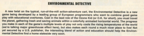 A platformer announced with a single screenshot at CES 1992. The game followed the "Ozone Kid" as they solved mysteries related to bettering the environment, being developed in efforts to encourage kids to do their best in cleaning up the environment themselves. The game never materialized in any capacity.[96]
