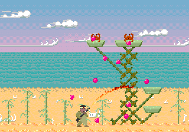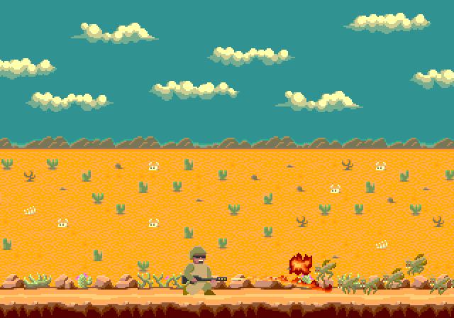 itch comments : This is a video game for Sega Genesis., It is a tribute to Contra and Metal Slug., It is inspired by internet meme "Hans get ze Flammenwerfer", Source code: https://github.com/snauts/flame