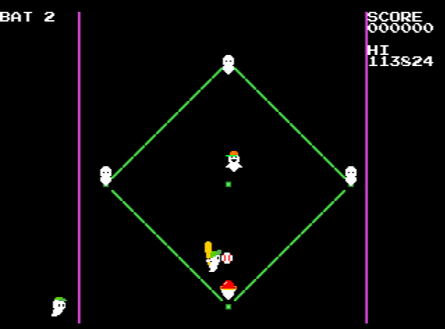 Ghost Baseball is an arcade score attack game where three ghosts take turns to score as much as they can in the SCORE TUNNEL during a very silly game of baseball.
