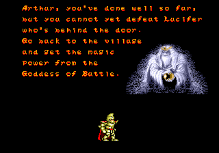 This is a Ghouls ‘n Ghosts (World) (Rev A) romhack that restores the characters’ names and fixes spelling mistakes.Version 1.2 Changes:Fixed typos and sentences. Changed CONGRATURATION to WAY TO GO! (Thanks for the feedback, Lagghard!)Version 1.1 Changes:Better spacing for the bad ending screen.Changes:Loki is Lucifer.Valkyr is St. Michael.Princess of Hus is Princess Prin Prin.