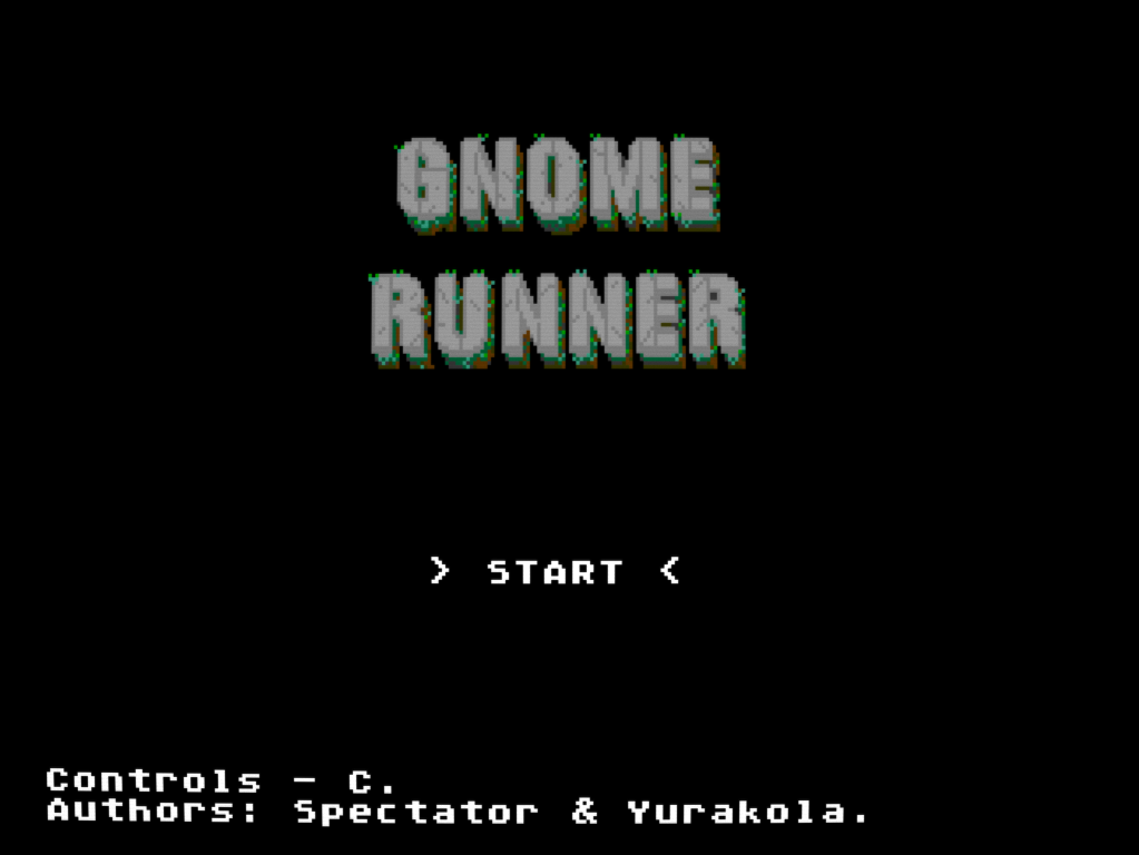 A simple endless runner game for Sega Mega Drive / Sega Genesis.About:You play the role of a gnome who runs towards his fate, despite the obstacles he may face.Controls:A - jump. C - return. Arrows - left / right / down. START - launch / pause.Recommendations:Use any Sega Genesis emulator to play this!BlastEmKega FusionFor a smooth picture in the game, turn on vsync.If you use BlastEm, then for the best picture in the video options (NTSC Overscan), set the value for "top" to 11 and "bottom" to 8. If desired, you can set the "crt" shader for the TV effect.Other:Source code on Github - here.This is my first game, so don't judge strictly :)
