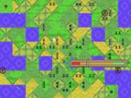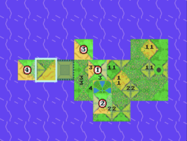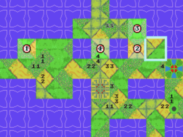 itch comments : When the gods celebrate a round of golf, they do it differently than mortals. No ageless deity would content themselves with yet another 18 holes at St. Andrews or Pebble Beach, teeing off for the same shot that they have made literally thousands of times already. When you're a divinity, you BYOGC (Build Your Own Golf Course)., Let's experience the golf of gods! You and up to 3 friends collaborate on building your own course, and then vex each other as you try to get the ball into the hole. The rules are a little different, but any aspiring immortal will catch on quickly., How to Play, Building Phase, Players simultaneously drop their tiles onto the board. Each tile is divided into 4 sides, and each side will be made of one of the four elements:, Fairway, Rough, Sand, Tree, In order to place a tile:, The tile must be adjacent to at least one other tile (up, down, left, or right)The elements on each side of the tile must match the elements on adjacent tiles., If you complete an entire feature (e.g. complete all sides of a tree or a sand trap) then you will win the territory and your number will be painted on it., If you hold a tile for too long, it will be replaced by a different tile., Press A or C to rotate your tile. Press B to place it., Golfing Phase, When it's your turn to golf, use the left and right buttons to aim, the up and down buttons to change your club, and A, B, or C to confirm. After confirming your club and angle, you will press A, B, or C to set your power and accuracy., All players take turns hitting the same ball., If you get super frustrated, you can give up on a hole by pressing Start and then A+B+C at the same time., Scoring:, If you hit the ball into your territory, you get one point.If you hit the ball into your opponent's territory, your opponent gains one point.If you hit the ball closer to the hole than it has been before, you get a point.If you hit the ball into the hole, you get two points., While you're not golfing, you can honk a horn (button C) or fire a rocket (button B). Try not to be too obnoxious., The person with the most points after 9 holes wins., Technical:, , This is a Sega Genesis/Mega Drive rom. It supports 4-player using the EA "4 Way Play" protocol (also available using the Team Player version 2). It should work on real hardware using a flash cart or in emulation. I recommend Genesis Plus GX., Asset sources are available in the "attribution.md" file., ,