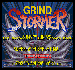 Grind Stormer (USA) Color HackGrind Stormer (or V-V in Japan) is quite good vertical shooter, but its colors are a bit washed down. This simple color hack was made to make it a little more colorful.v. 1.0 changes:tweaked colors of all stages,tweaked player and enemy colorstweaked title screenJust apply .ips patch on original rom. Hope you’ll like it.Dol.
