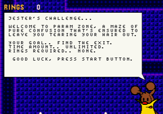 This is a hack of Sonic the Hedgehog for the Sega Genesis. It nearly completely changes all graphics, music, and layout. Sonic’s sprite remains the same but the rest is mostly changed. The game consists of a single maze-like level which can take 20 minutes or more to complete. A special boss awaits at the end of the maze. Most of the power-up monitors from Sonic 1 are still present in addition to two new ones. Monitors with red and blue arrows will change the stage layout when hit. Breaking monitors with a snowflake on them will freeze the level or thaw it out if it is already frozen.The music is notable for being several sets of DAC samples which are played together. These segments will play in random order making for unique tracks each time the game is played. This also saves space used by making a single song. The song segments are well composed and make for great atmosphere to the game.