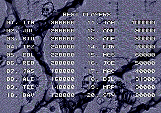 This patch is designed to add a simple saving mechanism for High Scores in Joe & Mac.How to use:Saving:Scores save after Initials are entered and player returns to the Sega screen. Loading:Scores load upon boot. If checksum fails or it is your first time booting, default scores are loaded.Patching information can be found in the readme file.
