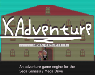 itch comments : WARNING : This project is abandoned and probably will not work as is.KAdventure is an adventure game engine for the Sega Genesis / Mega Drive., It uses the amazing SGDK to convert the assets, compile and produce a rom file for the Mega Drive and it was designed for no need of any programming experience. , Everything is done by editing and creating .csv files and the game builds and run by running a single batch file., The download comes with SGDK and with the emulator BlastEm and with the game Scream Mr. Jack inside the projects., There is also a tutorial inside the tutorial directory to help you understand how the engine works and have fun.