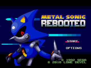 Metal Sonic Rebooted is a complete heavy modification of Sonic the Hedgehog 2 by Lone Devil for the Sega Genesis that won the Sonic Hacking Contest 2017. It features an extensive amount of new art, layouts, mechanics, music and features that in total create a different experience.Story:Dr. Robotnik has built an advanced army of Badniks to search for the Chaos Emeralds, and it’s up to Metal Sonic to find the emeralds before them by destroying everything in his way to show Robotnik he shouldn’t be replaced.Controls:↓ + A/B/C - Spindash↓ (Midair) - Fastfall: Fall instantly downwards in a rolling state. Holding down the jump button while bouncing off from a monitor or Badnik will boost your jumpheight. Try fastfalling down slopes for instant speed.↑ + A/B/C - Overdrive Attack: Speed burst at the cost of 5 rings.↑ + A/B (Midair) - Vertical Aerial Dash: Holding down the jump button will blast you upwards to reach upper routes or shortcuts at the cost of 10 rings.←/→ + A/B (Midair) - Diagonal Aerial Dash (only in Super form): Blast horizontally at the cost of 5 rings.C (Midair) - Overclocked Mode: Requires 200 Rings to overheat Metal Sonic for extended invincibility and speed that quickly drains your rings to death. Can also turn Super with all 7 Emeralds and 50 Rings.Level Select & Knuckles:Sonic 2 cheats are intact and Knuckles can be selected by doing the level select cheat from Sonic 1. Sonic 2 Continues cheat will give you 999 rings if you need a taste of Overclocked Mode.