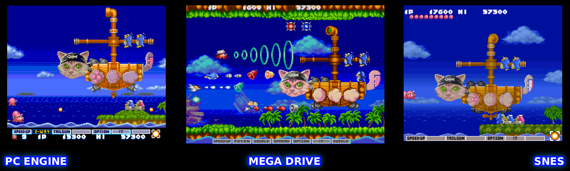 Gabriel Pyron has realized a mock-up to show that adapting the colorful Parodius to the Megadrive palette is possible