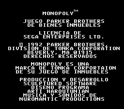 Translation to spanish for "Monopoly" for the Sega Genesis/Mega Drive."