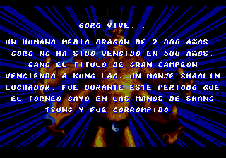 Translation to spanish for "Mortal Kombat" for the Sega Genesis/Mega Drive."