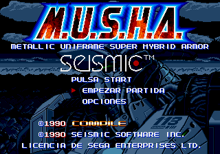 Translation to spanish for "MUSHA - Metallic Uniframe Super Hybrid Armor" for the Sega Genesis/Mega Drive."