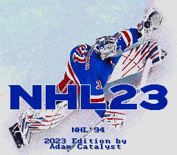 This hack will completely update NHL ‘94 for the 2023 playoffs. The goal is to try to provide the most refined and realistic modern versions of this all-time classic game. Key features include…New in ’23.800 players obsessively rated, up-to-date rosters, and realistic lines, based on extensive 2020-2023 regular season player data and analytics. Team colours, banners, uniforms, and logos all improved to be as realistic as possible, along with numerous other graphical refinements throughout the arena.Gameplay Revisioned.The gameplay has been adjusted for a more realistic modern hockey feel, with harder to score goals, easier to hit crossbars and posts, more realistic speed burst, fewer penalty calls, custom energy depletion and recovery rates (balanced for more realistic line rolling and shift length), and player rating distribution curves that have been carefully calibrated for more realistic gameplay on the ice.Graphical Refinements.Hundreds of other refinements have been made including title screens, banners, player photos, scoreboard, audience, face-offs, player sprites, nets, ice markings, coaches, scorekeepers, Zamboni driver, and more. The goal is to bring the most graphically refined version of NHL 94 ever made, while remaining faithful to the spirit of the original art direction.And so much more.Of course there is the weight bug fix, but also a custom weight scale, less variance in Hot/Cold rating randomization, immediate goalie control by pressing the (Y) button with a six-button controller, a custom 3-Stars of the Game rating formula, a Vegas / Washington / Winnipeg Menu & Player Cards crash fix, and more.Every single change is documented in the Release Notes / README.