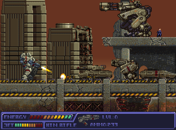 Impact Armor Alpha is an old school mecha platform game from the snes, megadrive era, like Assault Suits Valken (Cybernator), Front Mission:Gun Hazard and Ranger-X.It's being developed for Amiga AGA computers using the excelent Scorpion Engine, which allow us to port it to other platforms like MegaDrive and NeoGeo later.This is just a demo to show of how the gameplay will be, and, in its current state it does not reflect, by any means, the final product, It's also buggy sometimes and, there's not even a complete level.Good Luck and thanksCoding and GFX:Luís Carlos "Razor" ZardoMárcio AguiarMusic and SFXSimone "JMD" BernacchiaSystem Requirementsminimum A1200 + fast RAMRecomendedAccelerated A1200controls are:V: shootB: JumpN: ShieldDown: DashLeft and Right: movementObs: the HDF and .Lha versions requires that you navigate the menus with the numeric keyboard and use 2, also in the numeric keyboard for dash...I'm working on it.