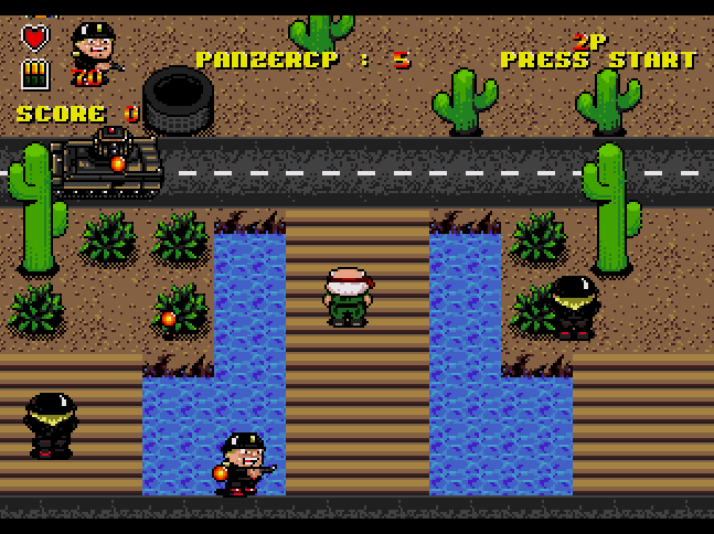 !! Papi Commando Remix !!DELUXE EDITIONThis the Deluxe Edition of Papi Commando !!Retreive Papi, Mami and the terrible C++ Forces for a fantastic Retro Battle with the final fight with Colonel KassTaGoul !Many Games Challenge :- Battle against new vehicules : PanzerCP, Sherman Tanks ...- Fight with your friends with the exciting Battle Mode !- You finish the Game ? Let's Rock with the HELL MODE !- ... Try to challenge the Special Secret Zone !- New Overkill Announcer on Kills Combo !- New Hall of Fame Mode !- New Enemy Respawn System for an exciting Challenge !- And more ...PAPI MOVE : D-PAD 1 TO MOVE. START TO PAUSE THE GAME. BUTTON A TO FIRE. BUTTON B TO REZ PLAYER AND CIVILIANS BUTTON C TO USE KNIFE. MAMI MOVE : D-PAD 2 TO MOVE. START TO START THE 2P MODE. BUTTON A TO FIRE. * BUTTON B TO REZ PLAYER AND CIVILIANS.If you enjoy the game, don't forget to rate it or write a comment, thanks ! ;-)Have Fun !!Vetea