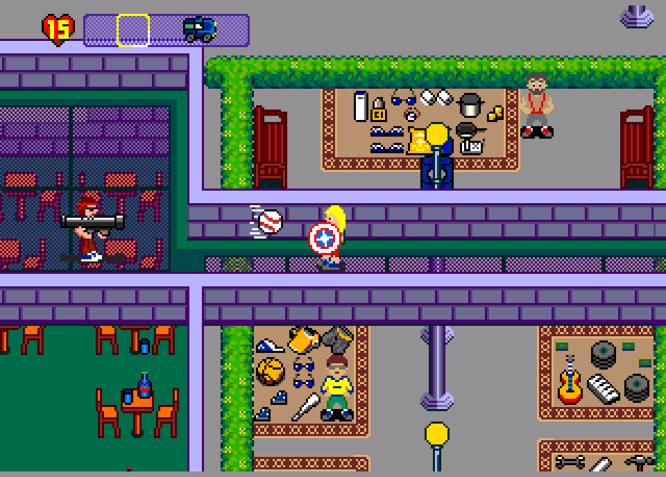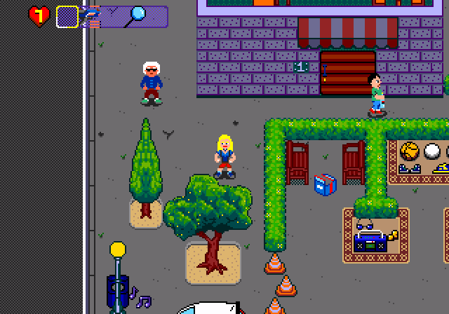 itch comments : Important improvement! We now have a PASSWORD system! You can write it down at any time during the game simply by going to the map. (It's not yet available in the demo version for download, but I will make it available soon)., , , , A 16-bit game! Explore 5 cities in search of old video games! Complete your collection! For 1 or 2 players (co-op)., , The game is a work in progress (WIP), and this demo allows you to test the first level (Old House) and the Itu race track., - Use the various items you find to overcome enemies and all other obstacles., - Talk to anyone you meet; many will give you challenges in exchange for rewards!, - Inspect objects and find hidden items., - Find songs during your search and exchange them whenever you want. (10 songs, 2 per location), - Sell the ones you no longer collect and buy the ones you couldn't find., - There are several possible endings, it all depends on the collection you complete! (not yet implemented), Check out the game's development log below., Thanks for visiting! Leave a comment if you enjoyed the game!