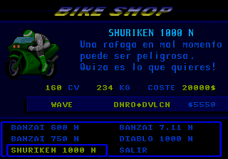 Translation to spanish for "Road Rash II" for the Sega Genesis/Mega Drive."