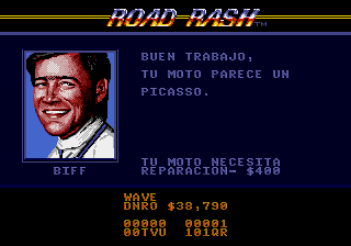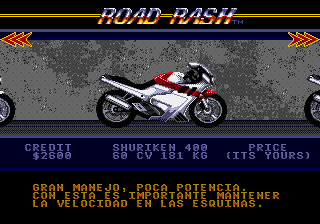 Translation to spanish for "Road Rash" for the Sega Genesis/Mega Drive."
