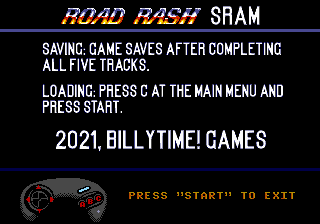 This patch is designed to add a simple saving mechanism to Road Rash.Details and Patching Instructions can be found in the Readme.