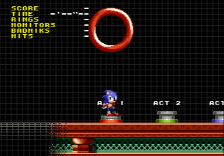 This is a hack of Sonic the Hedgehog for Genesis. The hack is named after the Sonic Amateur Games Expo (SAGE) and was submitted to the 2010 convention. The hack adds a Time Attack, as well as recording high score, ring total, monitors broken, badniks, and hits taken. Level Select is available on the new world HUB. There are challenges in the forms of full game playthrough and boss attack. In full game playthrough the HUD can be set to global mode showing the overall records during gameplay. During normal gameplay and during challenges pausing the game and pressing A will return the player to the overworld.Fifty achievements are available by pressing Start on the Overworld. If using a certain emulator available at Sonic Retro the ability to upload results and achievements are available meaning you can compete with other players. Otherwise achievements will be disabled and results will be saved differently. The link to the hack page on Sonic Retro with downloads is here: http://info.sonicretro.org/Sonic_the_Hedgehog_1_@_SAGE_2010The hack also supports SonMP3 which enables custom mp3 soundtracks. This can also be found at Sonic Retro.The patch is in xdelta format due to shifted data resulting in IPS patches containing original code. The ROM should be in BIN format.