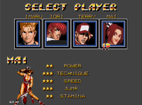 The modification content is as follows 1. Replace the original four with Benimaru Nikaido,IORI , Terry, and MAI. 2. Benimaru Nikaido: FFB is the rising dragon"