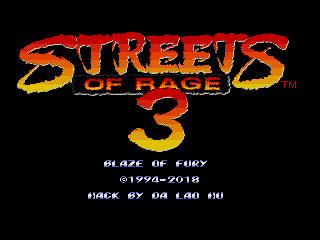 Streets of Rage 3 - Blaze of Fury / Bare Knuckle III - Ikari no BlazeBlaze isn’t very happy that she’s weaker than Axel in every game of Streets of Rage series, so she gains incredible strength in this hack.In this hacked game, the strength of Blaze is increased by approximately 50%. She also has some new attack moves. She wears a black jacket and a bike helmet in the game. That helmet isn’t for decoration. It’s also a melee weapon. Try that on the thugs, and you will know how good it is. Obviously she has conquered the biker gangs and became their new leader.Two IPS files are provided. SOR3_Blaze_fury.ips is for the US version. BK3_Blaze_fury.ips is for the Japanese version. You must apply the patch to the correct ROM. It is recommended that you use Lunar IPS.The hacked rom is tested under Gens and Kega Fusion. No glitch is found.Credits and Special ThanksThe pictures of this hack are developed based on an abandoned design of SoRR V4. Special thanks to Corkscrew Blow, who inspired the author the idea of the black jacket.