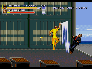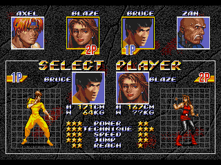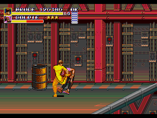IntroductionThis hack features the iconic martial arts superstar Bruce Lee in the classic beat’em up game “Streets of Rage 3″. He replaces Skate the kid in the original game.Bruce appears in the game in his yellow jumpsuit as in the movie “Game of Death”. His moves are inspired by the movies “Enter the Dragon” and “Game of Death”. Two patches are provided in the packet:SOR3_Bruce.ips is for the US version, known as “Streets of Rage 3″.BK3_Bruce.ips is for the Japanese version, known as “Bare Knuckles III”.You must apply the patches to the correct ROM. It is recommended that you use Lunar IPS.In this game, Bruce is obviously more powerful than the other playable characters. The hack was originally designed to bring the difficulty of the US version down to the level of the Japanese version. Therefore, if you apply this hack to BK3, the game will become very easy.In the US version, the dialogs of the characters are changed to fit Bruce in the story. While no dialog is changed in the Japanese version.An additional bonus is that the outfit of Blaze is changed.Please find the move list in the Readme file.Known Glitches:In the two-player mode, if one player chooses Bruce and performs a Lightning Dragon Kick or Backflip Kick, the graphic tiles may be messed up for a couple of frames, and then return normal.Again in the two-player mode, if one player chooses Bruce and performs a Lightning Dragon Kick or Backflip Kick, the pictures of all the knives and darts in the scene may be messed up, and will not return normal.The hacked rom is tested under Gens and Kega Fusion. No other glitch is found.Please send the author a message in the forum if you find another glitch.Credits:Some sprites were ripped by Lord Zymeth (with modification)Have fun!