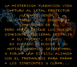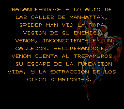 Translation to spanish for "Spider-Man and Venom - Separation Anxiety" for the Sega Genesis/Mega Drive."