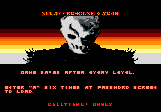 This patch is designed to add a simple saving mechanism to Splatterhouse 3.Details and Patching Instructions can be found in the Readme.