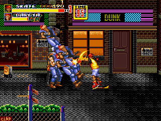 Meet - Streets of Rage 2 - PLUS ULTRA: SECOND SQUAD.I. Overview:This hack is intended for fans to play as ordinary characters in the SOR universe. SECOND SQUAD is a sequel Streets of Rage 2 - PLUS ULTRA with other characters.This hack allows to play for modified versions of ZAN, Shiva, ASH and SOR3 version Skate in SOR2.II. Features:Added 6-button gamepad support. Back Attack now is Y button.All playable characters can run.All playable characters can change direction and turn around while running.All playable characters can jump further while running.The command to run (f, f) becomes more sensitive.The game has Juggling.Neutral Air Attack(Jump+B) is now Air to Air. Works great for juggling an opponent in a corner or while playing in Co-op, but can miss when attacking a ground target.You can choose the same characters.SoR3 like combo style - you can deal full combo, without hit enemy.Player characters have animation recovery when they escape from being thrown (up + C).Charge attacks require holding B for only 2/3 second.Offensive Special no longer costs player’s own health.If the player presses A while running, the player’s character will perform Offensive Special (in the original game, nothing will happen).You can use the Defensive Special and Offensive Special when you capture the enemy.You can use the Defensive Special and Offensive Special when grabbing an enemy from behind.KO count of the players is displayed.Mania difficulty is directly accessible.Stage selection is available.III. Characters:More than a hundred new sprites from SORRemake were used to create Shiva and Ash.Skate inspired by this hack. IV. Hint: If you did a Forward Jump Attack with a run, and continue to hold forward, then upon landing the character will run further. V. Credit:All new code is taken from different hacks Dha_Lau_Hoo , fixed by Docm@n88hz and compiled by savok.Special thanks to Dha Lau Hoo for taking notes on his hacks and for guides with Air combo and Skate Throw.Thanks to Docm@n88hz for helping to parse and fix the new code.Thanks to FinalCrashSoR3 for found SORRemake spritesThanks to uuser for FA Blaze and Max Fix.
