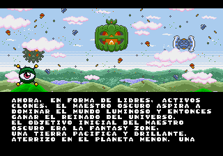 Translation to spanish for "Super Fantasy Zone (Japan)" for the Sega Genesis/Mega Drive."