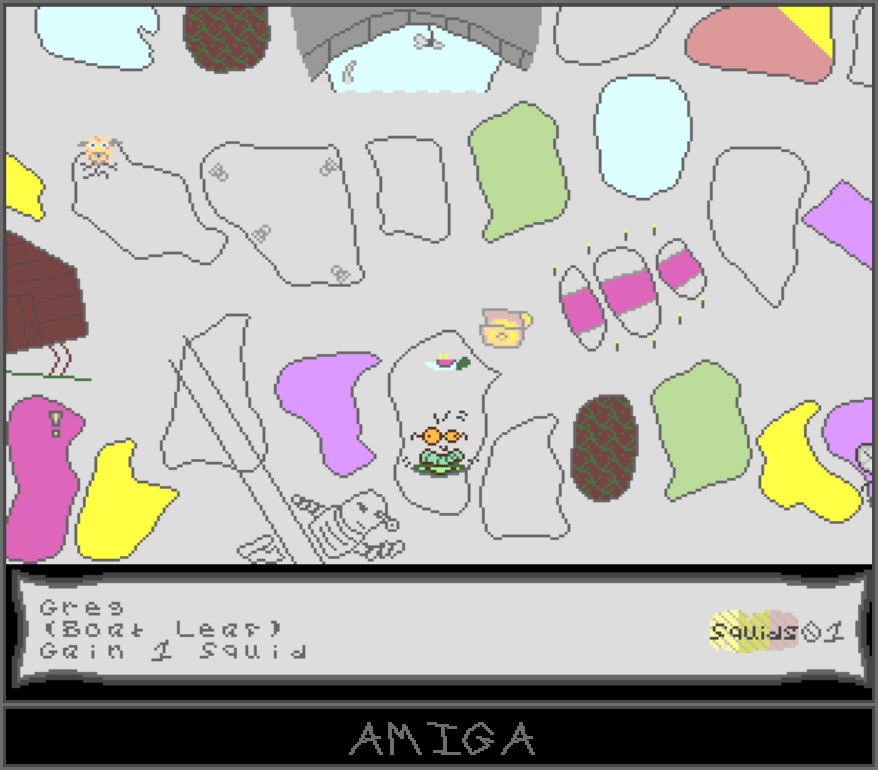 Roll the die, get the squids and be the one to win the prize. Yes! Its The KlirkCartoony board game action for the Amiga and Mega Drive/GenesisPlay 2 to 4 players locally with others, cpu or both.