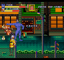 This is a player sprite hack of Streets of Rage 2 which replaces Max for Tick. The voices of Max was replaced by the voices of Tick from the Sega Genesis game “The Tick”, his speed was increased, his physics was modified, he is capable of running and tick has different attacks in comparison with Max.
