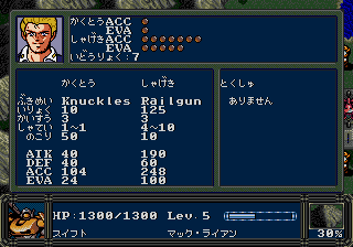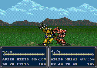 The war of 2384 against the aliens ended with a narrow victory of the Earth. One of the major contributors to victory was the high-mobility humanoid weapon system “SERD” developed in secret by the Asian Federation. It is now year 2396. Merisma Harp, one of the recently created countries, has developedits own VECTORs (a weapon that surpassed the performance of the SERDs). A special task force called “Slash” was formed in order to test the latest prototypes. And so, VECTORs were finally thrown into real combat.This hack changes the next aspects of the original game:all weapons have been modified (damage, range, ammunition, etc); Also, they have been renamed.some attributes of the player’s mechs have been slightly changed (mainly defenses and hp), and some mech´s arsenal has been modified as well.several NPC allied and enemy mechs have been modified.the status words have been replaced by more common RPG genre abbreviations; for example AP = ATK, DP = DEF, etc.This hack is compatible with the translation patches. Please see the Readme File.
