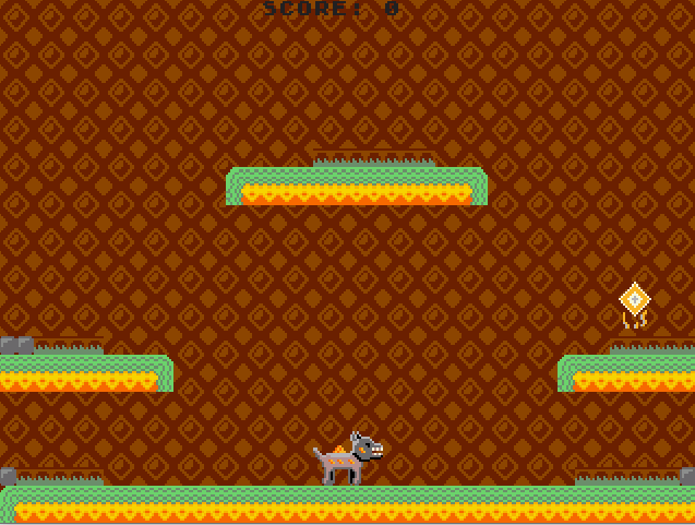 ====================================A magical dog, spends his day to day eating his favorite food energy crystals,until one day he is invaded by a spiked structure that seeks to hurt him, can you help him eat his food without being hurt?====================================